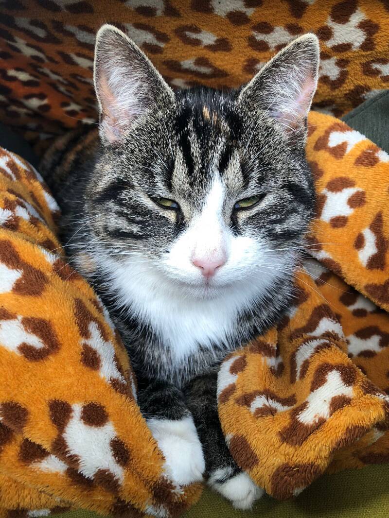 Huisdieren zijn niet toegestaan. Poes Mila woont op de kwekerij.